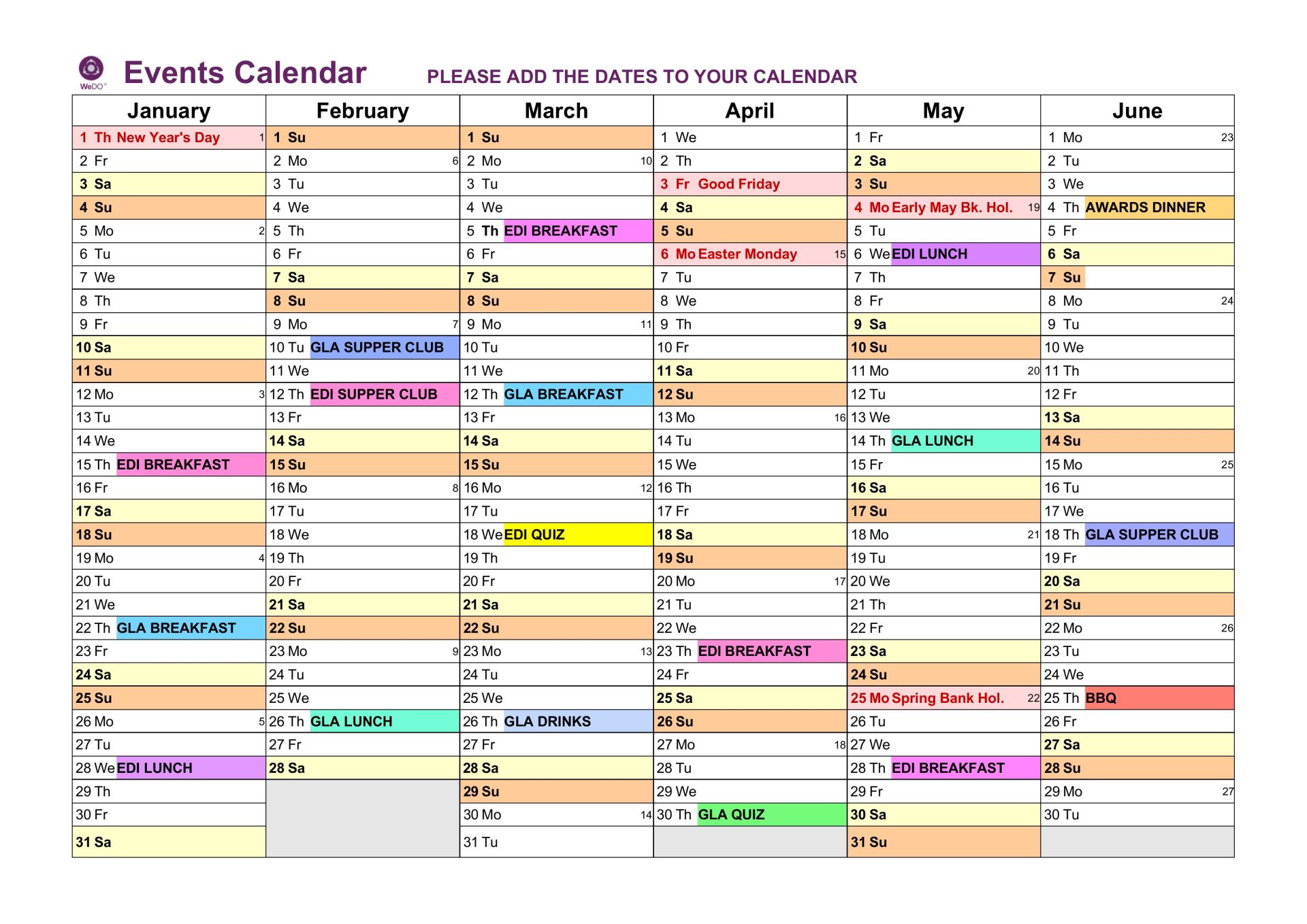 Click HERE to download the Events Calendar.